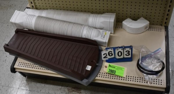 Lot of 2 downspout extensions and 2 splash blocks for gutter and assorted additional items