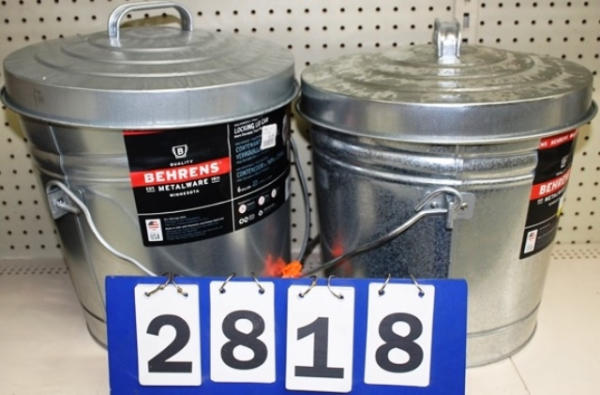 Lot of 2 6-gallon metal trash cans with lids