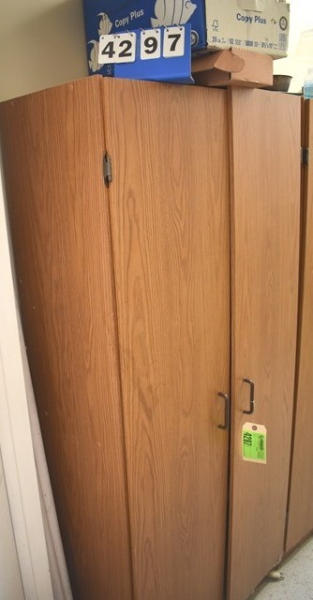 Wooden cabinet, 66" x 62 1/2" x 15" including contents