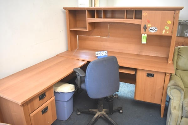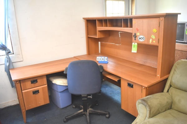 Wooden L-shaped desk (71" long x 61" high x 24") with credenza