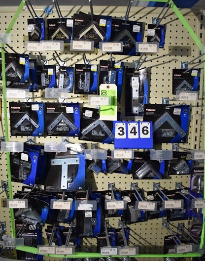 Peg board lot, mostly Pro Source, assorted corner brackets, angle brackets, mending plates, small hinges