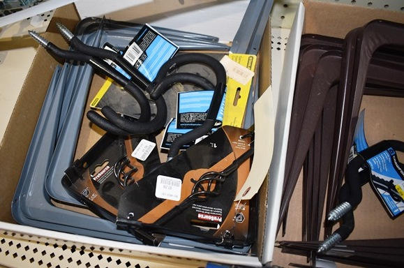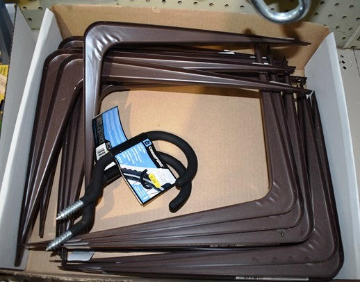 Lot of shelf brackets and large hooks