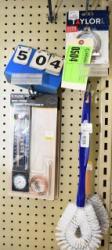 Lot consisting of Taylor Oven Thermometers, Taylor Indoor/Outdoor Thermometers and toilet bowl brushes