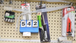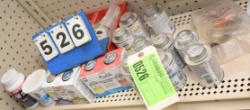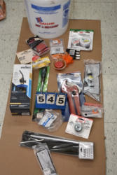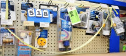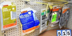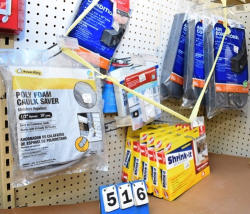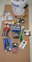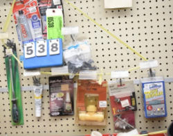 Peg board lot consisting of pipe repair, reseating tools, Goop, etc.