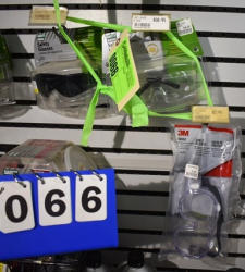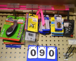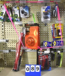 Shelf lot of First Aid Kits, Ear Plugs, Safety Glasses and Battery Cable