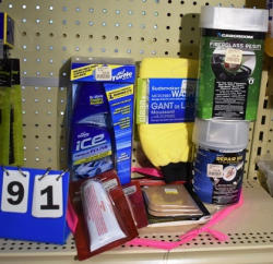 Misc. automotive lot consisting of tube patch kits, deer warnings, compass, car air fresheners, etc.