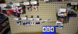 Shelf lot of LED cordless light switch and pop-up flashlights