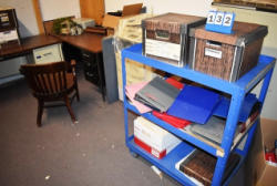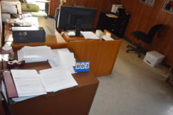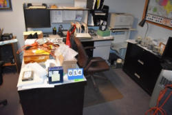 #12 - Office Lot Including L-Shaped Desk Approx. 92" x 66", Table, Chairs, Filing Cabinets, Etc. (Computers/Monitors Not Included)