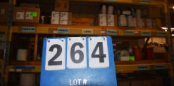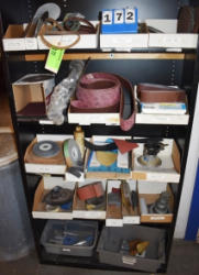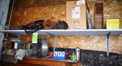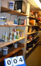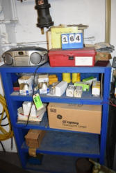 #337 - Shelving Unit with Contents Consisting of Lightbulbs, Stain, Rubber bands, Oils, Etc.