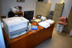 #11 - Office Lot Including 4 Filing Cabinets, Wooden Desk Approx. 66"W, Chairs, Etc. (Computers/Monitors Not Included)