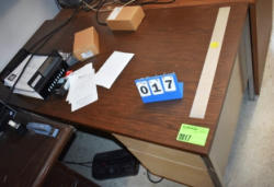 56" x 36" Desk, Chair, Paper Cutter, Etc. (Computers/Monitors Not Included)