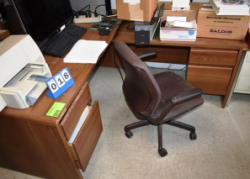 #18 - Approx. 60" x 70" L-Shaped Desk, Chair, 3 Drawer Cabinet, Etc. (Computers/Monitors Not Included)