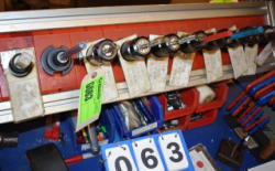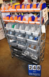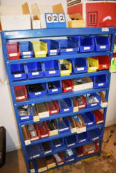 7' Rack with Contents of Assorted Laminator Parts, Plugs, Etc.