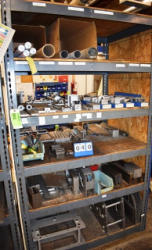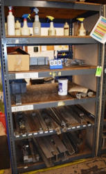 Shelf Lot Consisting of Machine Jigs, Aluminum Parts/Pieces, Parts Bins.