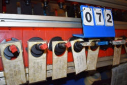 Leland Gifford Six Head Drill Press Serial No. 2L-MS-20-11980, 208V, 3 Phase. Onsite Exclusive Rigger will disassemble and load on your trailer for the following flat fee: $400.00. No other rigger is permitted onsite.