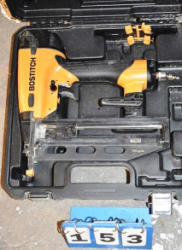 Wall Lot Consisting of Bostitch Coil Nailer, Hammer, Misc. Tools, Partial Box of Coil Nails, Etc.