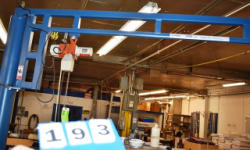 Gorbel 1 Ton Capacity Gantry with CM ValuStar 1 Ton Electric Chain Fall. Onsite Exclusive Rigger will disassemble and load on your trailer for the following flat fee: $400.00. No other rigger is permitted onsite.