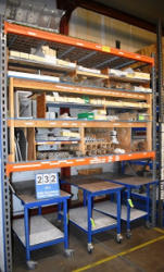 2 Rack Contents of Mostly Extruded Aluminum, Assorted Aluminum and Plastic Parts