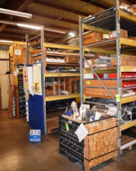 #361 - 2 Rack Contents of Mostly Extruded Aluminum, Assorted Aluminum and Plastic Parts