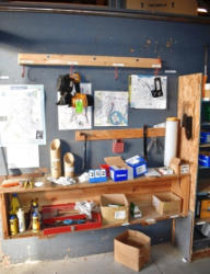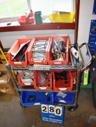 Approx. 10'L Workbench with Assorted Tools, Parts Organizer Bins, Etc.