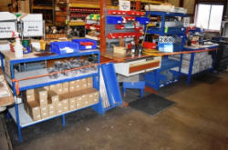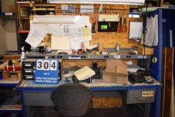 #313 - Approx. 10'L Workbench with Contents Consisting of Breaker Tester, Laminator Parts