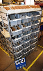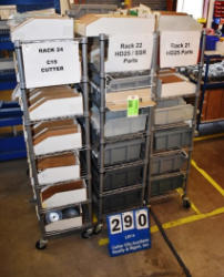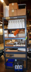 #318 - 7' Rack with Contents of Assorted Laminator Parts, Plugs, Etc.