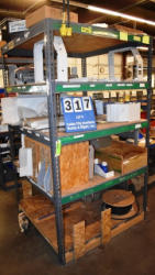 #317 - 7' Rack with Contents of Assorted Laminator Parts, Plugs, Etc.
