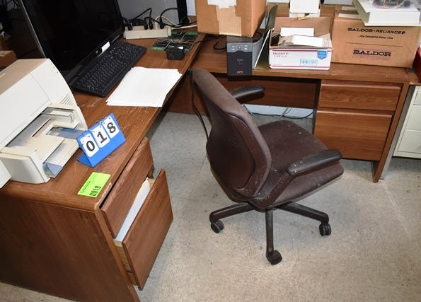 Approx. 60" x 70" L-Shaped Desk, Chair, 3 Drawer Cabinet, Etc. (Computers/Monitors Not Included)