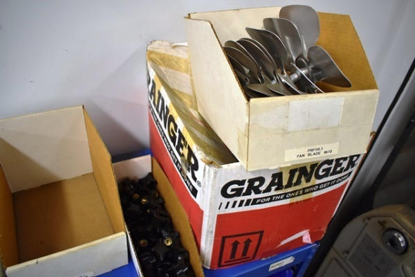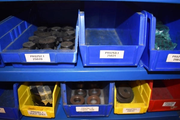 Shelf Lot Includes Shelf with Various Parts, Sprockets, Etc.