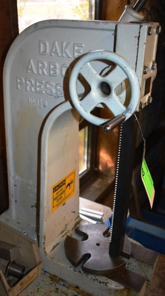 Dake Model 11/2B Arbor Press. Onsite Exclusive Rigger will disassemble and load on your trailer for the following flat fee: $25.00. No other rigger is permitted onsite.