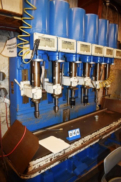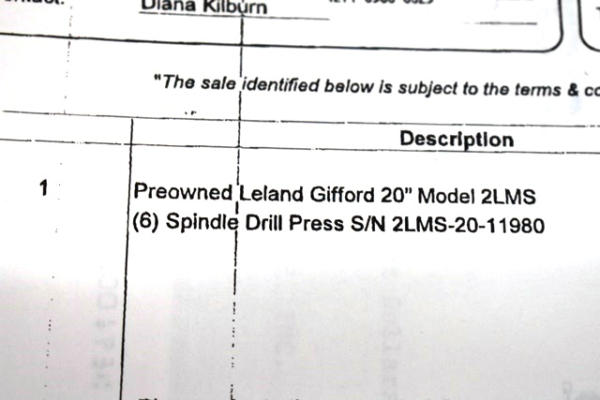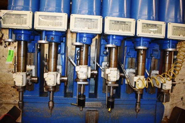 Leland Gifford Six Head Drill Press Serial No. 2L-MS-20-11980, 208V, 3 Phase. Onsite Exclusive Rigger will disassemble and load on your trailer for the following flat fee: $400.00. No other rigger is permitted onsite.