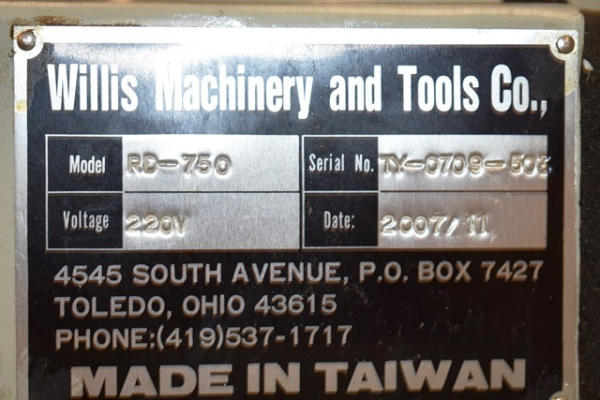 Willis Machinery Model RD-750 220V Radial Arm Drill Press. Onsite Exclusive Rigger will disassemble and load on your trailer for the following flat fee: $300.00. No other rigger is permitted onsite.