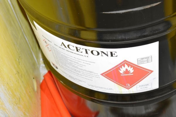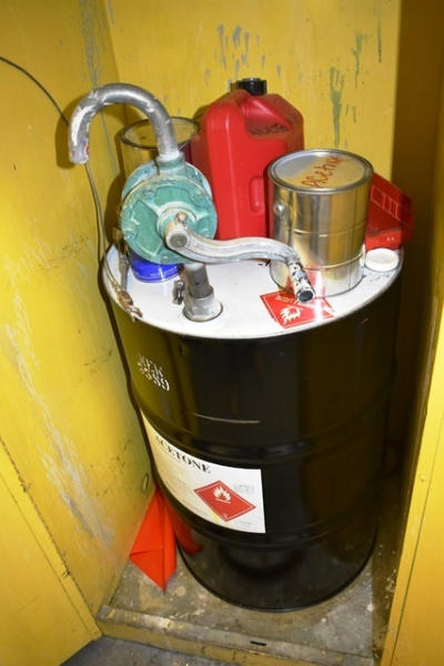Flammable Material Cabinet Approx. 32"W x 32"D x 65"H with Acetone Tank and Pump