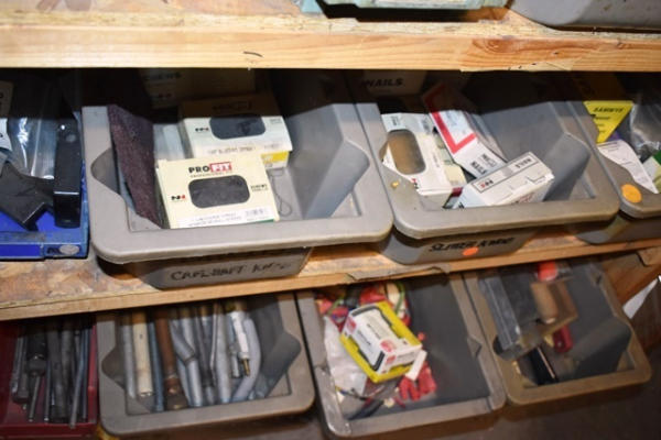 Shelving Cabinets Including Screws, Nails, Air Fittings, Air Handler, Filters, Etc.