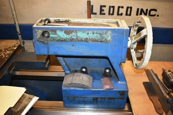 Lodge and Shipley Blue Chip Gap Bed Lathe with 2 Center Rests, 20" Swing, 12' Table. Onsite Exclusive Rigger will disassemble and load on your trailer for the following flat fee: $1,500.00. No other rigger is permitted onsite.