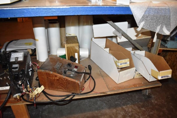 Approx. 10'L Workbench with Contents Consisting of Breaker Tester, Laminator Parts