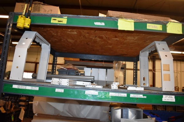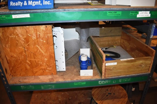 7' Rack with Contents of Assorted Laminator Parts, Plugs, Etc.