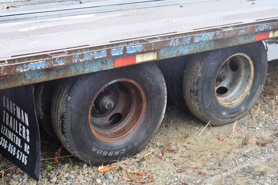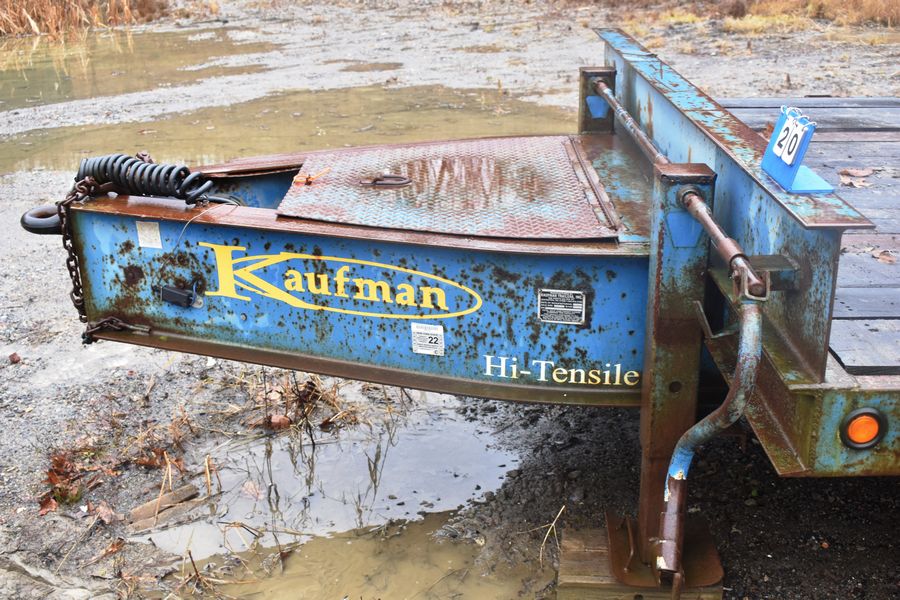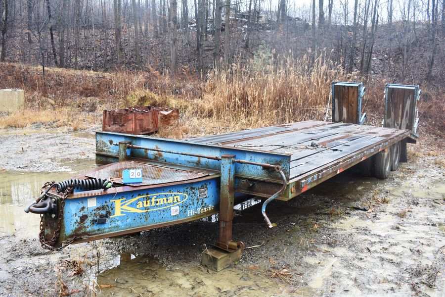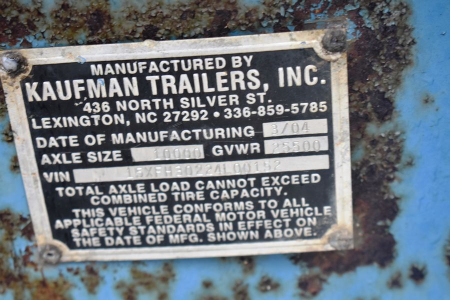 Approx. 2004 Kaufman Trailer GVWR 25,500 VIN# 15XFH30224L00152, Approx. 24' Upper Deck and 6' Beaver Tail, With Folding Ramps. Transferable Paperwork Available at Removal.