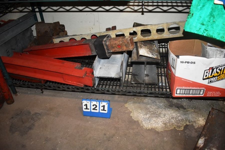 2 Shelf Lots of Assorted Metal, Steel Cable, Exhaust Parts
