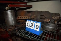 2 Shelf Lots of Assorted Metal, Steel Cable, Exhaust Parts